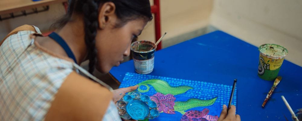 Aseema is one of the only two centres in India where the international Room 13 Art Programme is adopted to teach children art. The children who form a part of Room 13 get the opportunity to study national and international artists. They work with a variety of mediums and techniques and create beautiful artworks which are then replicated on a range of products.